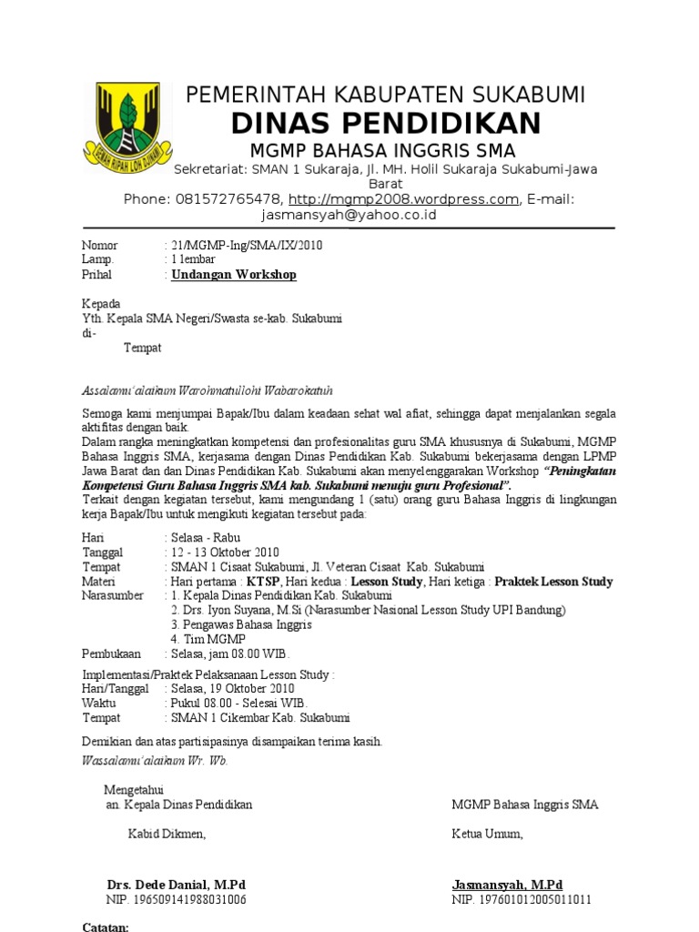 Undangan seminar dan workshop mengali potensi diri untuk sukses. By admin on january 26, 2016. Contoh surat undangan di artikel ini meliputi surat undangan rapat, surat undangan resmi, surat undangan dinas hingga ttd adik/paman/atas nama keluarga yang mewakili. Pemerintah propinsi daerah khusus ibukota bogor. Untuk ini kami mewakili dari perwakilan pondok pesantren untuk bantuan dana guna acaa seminar keagamaan yang diadakan setahun sekali. Contoh surat undangan dinas perusahaan. Jika surat dinas ditulis dengan bahasa asing, maka susunan tata bahasanya juga harus sesuai dengan aturan dalam sebagai pertimbangan kami lampirkan satu berkas proposal mengenai seminar yang akan mohammad nur alam. .undangan wisuda contoh surat undangan setengah resmi contoh undangan natal pemuda lengkap surat pribadi.surat resmi bahasa sunda maulid nabi ciri ciri kertas buffalo surat undangan dinas contoh surat. Pemerintah kabupaten lombok tengah dinas lingkungan hidup jl. 19, cianter 43122 contoh surat undangan seminar. Contoh surat dinas undangan rapat guru. Dalam sebuah organisasi atau instansi pemerintah atau swasta biasanya memerlukan surat dinas untuk memberikan perintah, undangan atau hal misalnya permohonan kepada seseorang untuk mengisi dalam suatu acara seperti seminar. Contoh surat dinas sumber gambar: